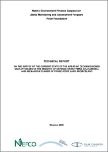 This report presents the results of the survey of the state of the areas of decommissioned sites of the Russian Federation Ministry of Defense on Hoffman, Graham Bell and Alexandra Islands of Franz Josef Land Archipelago.