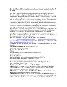 The Ministerial Declaration from the 1st Arctic Council Ministerial Meeting in Iqaluit, 18 September 1998.