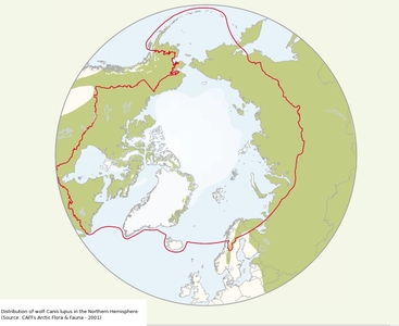 Arctic Council , Conservation of Arctic Flora and Fauna Working Group (2001) CAFF Map No.29 - Distribution of wolf Canis lupus in the Northern Hemisphere. [Image]
