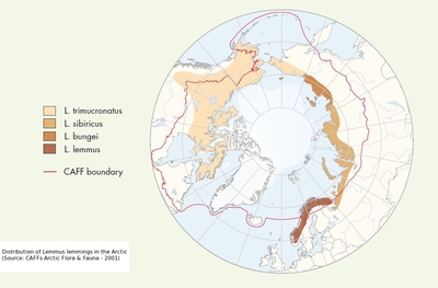 Arctic Council , Conservation of Arctic Flora and Fauna Working Group (2001) CAFF Map No.31 - Distribution of Lemmings in the Arctic. [Image]