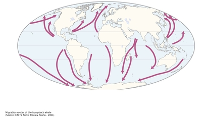 Arctic Council , Conservation of Arctic Flora and Fauna Working Group (2001) CAFF Map No.35 - Migration routes of the Humpback Whale. [Image]