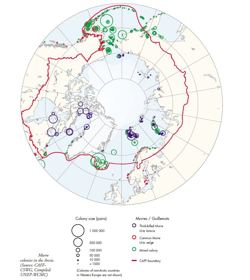 Arctic Council , Conservation of Arctic Flora and Fauna Working Group (2001) CAFF Map No.36 - Murre Colonies in the Arctic. [Image]