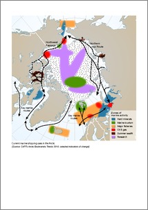 Arctic Council , Conservation of Arctic Flora and Fauna Working Group (2010) CAFF Map No.54 - Current marine shipping uses in the Arctic. [Image]