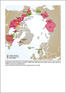 Arctic Council , Conservation of Arctic Flora and Fauna Working Group (2010) CAFF Map No.56 - Distribution and observed trends of wild Rangifer populations throughout the circumpolar Arctic. [Image]