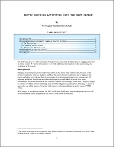 The following note is a brief summary of the previous status and developments on shipping activities in Arctic waters. All countries were invited to provide additional information on this topic during the workshop in Reykjavik.