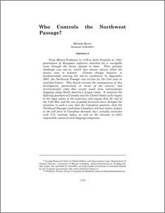 Byers, Michael and Lalonde, Suzanne Vanderbilt Journal of Transnational Law: Who Controls the Northwest Passage? Who Controls the Northwest Passage? .