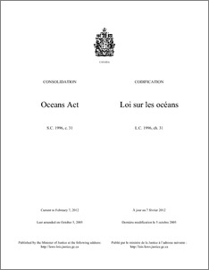 Canadian , Minister of Justice Oceans Act, Canada 1996. Other. Canadian Ministry of Justice.