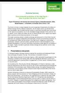 Kreimer, R. Andreas and Herata, Heike and Koukku-Ronde, Ritva and Schopmans, Hendrik and Jacobson, Cynthia and Peramaki, Liisa and Larsson-Blind, Åsa and Stephen, Kathrin and Klenzendorf, Sybille and Krakau, Manuela (2019) Workshop Summary: Environmental protection of the High North – How to protect the Arctic from afar? In: Environmental protection of the High North – How to protect the Arctic from afar?, 24 Oct 2018, Bismarckplatz 1, 14193 Berlin.