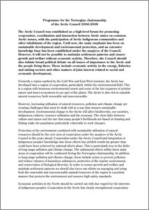 Arctic Council, - (2008) Programme for the Norwegian Chairmanship of the Arctic Council 2006-2008. Documentation. Arctic Council. (Submitted)