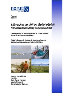 Vistnes, Ingunn and Lie, Ivar and Karlsen, Geir Runar and Nygaard, Vigdis and Søreng Ulfsdatter , Siri (2008) Utbygging og drift av Goliat oljefelt Konsekvensutredning samiske forhold Development of and production at Goliat oil field Impacts on Saami conditions Goliat oljoguovllu huksen ja doaimmaheapmi Váikkuhusčielggadeapmi sámi diliid birra. [Project]