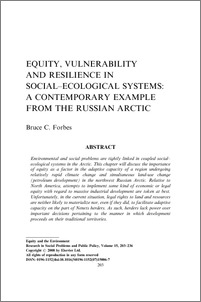 Forbes, Bruce C. (2008) Equity, Vulnerability and Resilience in Social-Ecological Systems: a contemporary example from the Russian Arctic. Research in Social Problems and Public Policy, 15. pp. 203-236.