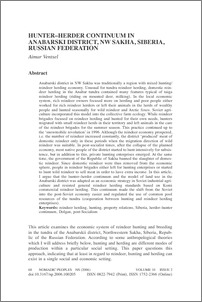 | Keywords: | reindeer herding, hunting, property relations, Siberia, herder-hunter continuum |