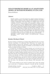 Neo-Entrepreneurship as an adaptation model of reindeer herding in Finland.