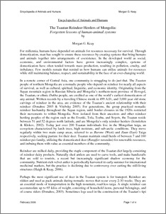 Keay, Morgan G. (2006) The Tsaatan Reindeer Herders of Mongolia : Forgotten lessons of of human-animal systems. Encyclopedia of Animals and Humans. pp. 1-4.