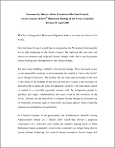 Statement by Mattias Åhrén, President of the Sámi Council, on the occasion of the 6th Ministerial Meeting of the Arctic Council in Tromsø 29. April 2009.