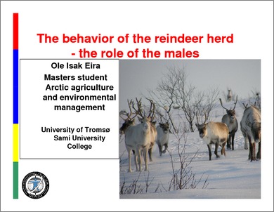 Eira, Ole Isak (2009) The Behaviour of the Reindeer Herd - the Role of the Males. In: IV World Reindeer Herders Congress, Kautokeino / Guovdageaidnu.