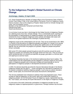 d'Escoto Brockmann, Miguel (2009) Address To the Indigenous People's Global Summit on Climate Change. In: Indigenous People's Global Summit on Climate Change, Anchorage, Alaska.