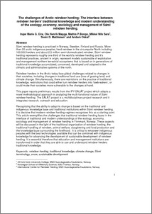 Eira, Inger Marie G. and Magga , O.H. and Bongo, Mathis P. and Sara, Mikkel Nils and Mathiesen, Svein D. and Oskal, Anders (2008) The Challenges of Arctic Reindeer Herding: The Interface Between Reindeer Herders Knowledge and Modern Understanding of the Ecology, Economy, Sociology and Management of Sami Reindeer Herding. Sami University College.