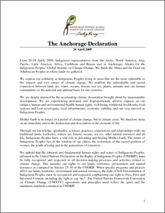 Indigenous Peoples’ Global Summit on Climate Change, - (2009) The Anchorage Declaration. Indigenous Peoples’ Global Summit on Climate Change.
