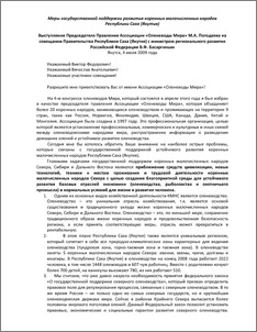 Меры государственной поддержки развития коренных малочисленных народов Республики Саха (Якутия) Выступление Председателя Правления Ассоциации «Оленеводы Мира» М.А. Погодаева на совещании Правительства Республики Саха (Якутия) с министром регионального развития Российской Федерации В.Ф. Басаргиным.